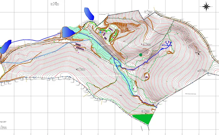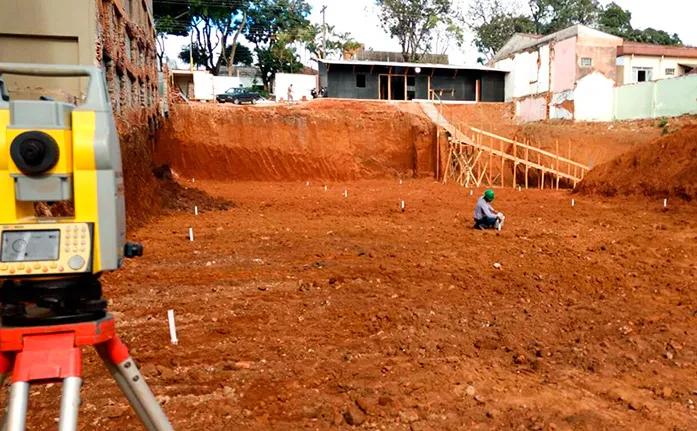 Consiste no levantamento das características do terreno, abrangendo suas dimensões, limites e variações de relevo, além da localização de elementos construídos e naturais presentes na área.